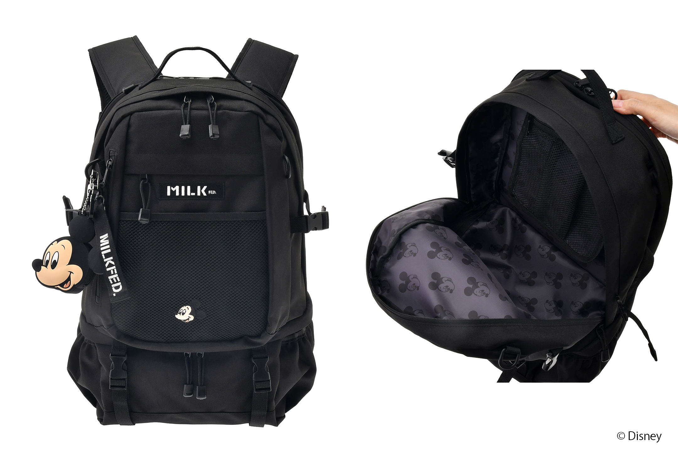 ・バックパック チャーム・ポーチ・カラビナ付き 32L ミッキー ¥16,500 intax